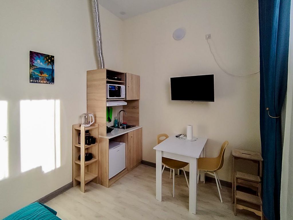 Наполнение стандартного номера: Кровать, шкаф, комод, обеденный стол, чайник, телевизор, кондиционер. Отдельная ванная комната в каждом номере. Каждый номер оборудован кухонной зоной (столешница, раковина, плитка, холодильник, вытяжка). В гостевом доме есть общая столовая, прачечная. Расстояние до центрального пляжа и парка аттракционов :пешком 15мин На автомобиле: 5мин (1,5км) Так же в 1,5км бесплатный трансфер до парка Олимп и Сафари парка. В шаговой доступности круглосуточный магнит, озон, вайлдберриз, район спокойный улица не проездная (тупиковый двор) Год последней реновации - 2025 Правила проживания: Время заезда после 14:00 - Время выезда до 12:00 - Курение запрещено - Проведение вечеринок запрещено - Запрещено проживание лиц младше 18 лет - Проживание с домашними животными запрещено Парковочное место предоставляется по предварительному запросу и не является гарантированным, так как их количество ограничено.
