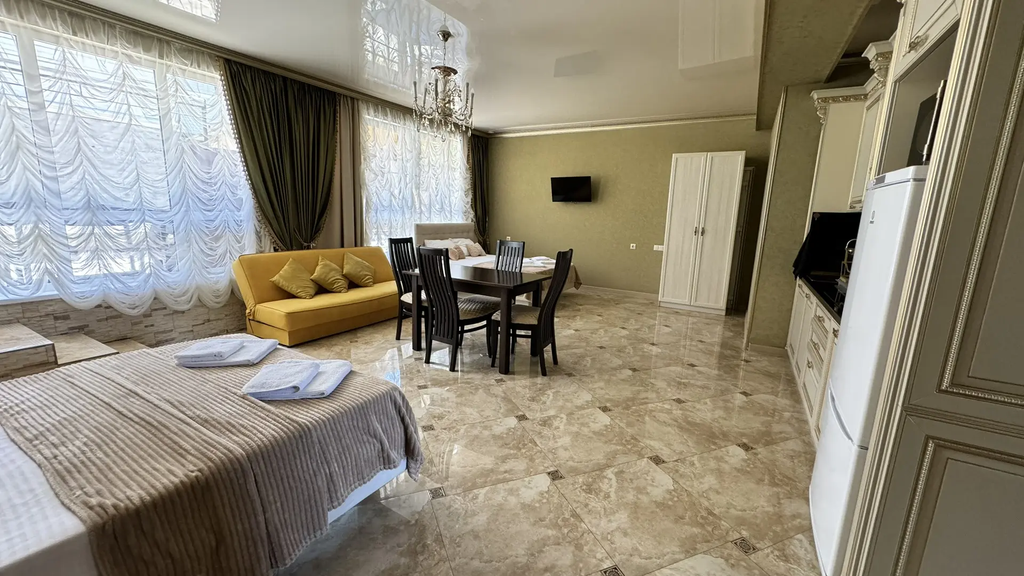 Гостевой дом «Сакура» расположен в посёлке Вардане (Сочи) по адресу: ул. Фруктовая, д. 18. Это трёхэтажное здание на закрытой озеленённой территории. Расположение и инфраструктура До оборудованного галечного пляжа — около 700 м (10 минут пешком). На пляже есть раздевалки, навесы, батуты и горки для детей, а также доступны водные развлечения. В шаговой доступности от гостевого дома находятся: Магазины («Пятёрочка», «Магнит»); Рынки; Кафе и столовые; Аптеки; Банкоматы. До железнодорожной станции — около 1,5 км. От станции можно на электричке добраться до различных достопримечательностей Сочи, например, Красной Поляны («Роза Хутор»), Олимпийского парка («Сочи Парк»), Ривьеры, Дендрария, морского порта, дельфинария. В 15 минутах езды находится аквапарк «АкваЛоо». Номера и услуги: Шестиместный «семейный» номер. Площадь — 54 м², 6 +1 гостей. В номере: кухня, холодильник, телевизор, кондиционер, душ и туалет. Двухместный «стандарт улучшенный». С выходом на террасу. Трёхместны
