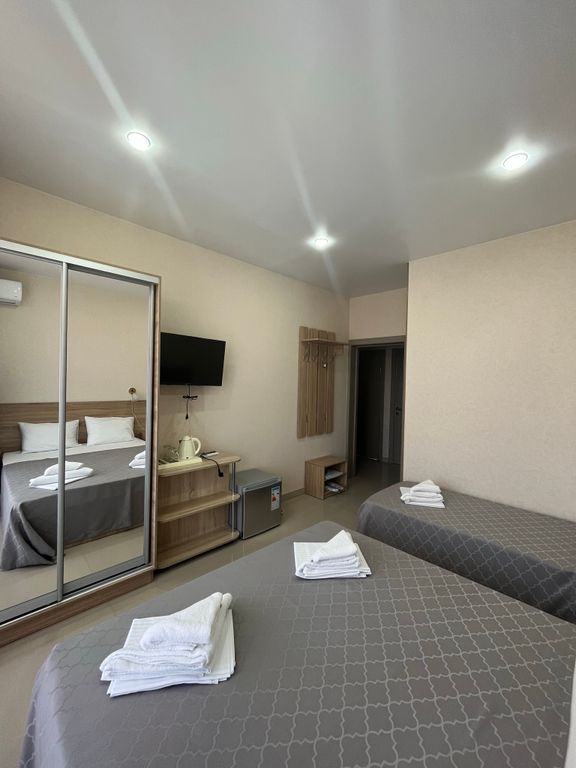 Гостевой дом Добрый расположен в посёлке Лазаревское в 50 метрах от реки Псезуапсе и прогулочной набережной и в 200 метрах от аквапарка Наутилус. К услугам гостей предлагаются номера с кондиционерами и бесплатным wi-fi, который работает на всей территории дома. В числе удобств — бассейн с подогревом и выделенной детской зоной. Зона бассейна оборудована шезлонгами, мини столиками, зонтами от солнца, душем и санузлом. Полотенца для бассейна предоставляются для каждого номера при заселении. Во всех номерах телевизоры с плоским экраном со smart tv, холодильник для напитков и собственная ванная комната с душевой зоной, оснащенная феном, косметическими принадлежностями - комплекты зубных щеток и зубной пасты. Мыло, гель для душа и шампунь предоставлены в неограниченном количестве в диспенсерах. Тапочки. В номерах белоснежное постельное бельё и полотенца, комфортные матрасы и подушки Аскона. На территории обустроенная беседка для комфортного времяпрепровождения, мангальная зона. Также у