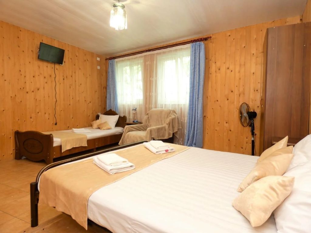 Наш гостевой дом с необычной архитектурой расположен на небольшой возвышенности, великолепные виды, чистый горный воздух и пение птиц в тишине-все,что нужно для настоящего отдыха