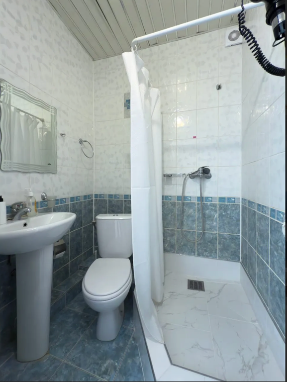 Гостевой дом «Арина» расположен в самом центре Геленджика, на первой линии — до набережной и прогулочных зон можно дойти за считанные минуты. Вокруг вся городская инфраструктура: рядом супермаркеты «ВкусВилл» и «Перекрёсток», чуть дальше — «Магнит» и «Пятёрочка», а также несколько недорогих столовых. На первом этаже здания работают аптека, а при выходе гостей встречает парк аттракционов и далее — главная набережная. Для проживания подготовлены уютные номера со всем необходимым оснащением: удобная мебель, кондиционер, телевизор, Wi‑Fi, собственная ванная комната с душем, фен. В каждом номере есть чайник, холодильник, микроволновка и посуда — всё, чтобы чувствовать себя комфортно и в отпуске, и в деловой поездке. Также доступна общая стиральная машинка и гладильные принадлежности. Несмотря на центральное расположение, в мини-отеле спокойно и тихо. Парковка бесплатная: вдоль дороги под камерами или у городской поликлиники. До ключевых развлечений и достопримечательностей, включая парк «Ол