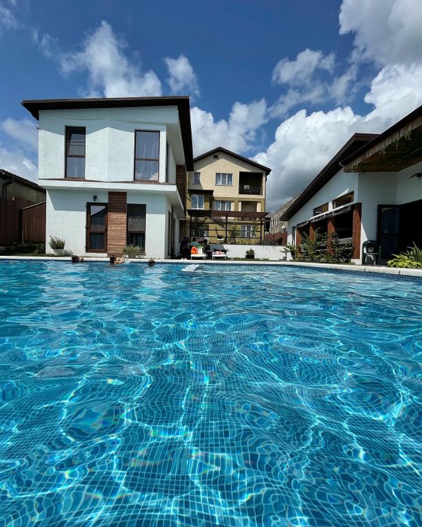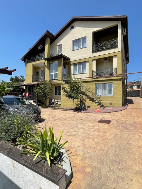 Гостевой дом располагает небольшим номерным фондом различной модификации. От двухместного до двухкомнатного номера для 8 человек. Некоторые номера со своей кухней. Уютные номера оснащены всем необходимым для комфортного пребывания. В каждом номере: кондиционер, телевизор, холодильник. Фен предоставляем по запросу. На территории расположен просторный бассейн с подогревом, с выделенной зоной для малышей. В бассейне разноуровневая глубина, это позволяет свободно плавать как детям, так и взрослым. Режим работы бассейна с 8.00 до 22.00 К услугам маленьких гостей есть детская площадка и турник для взрослых. К услугам взрослых мы бесплатно предоставляем в пользование мангальную зону. Рядом с бассейном работает кафе-бар с большим выбором напитков и закусок. По запросу готовим домашние завтраки и обеды. Здесь же можно осуществлять прием собственной еды, для ее подогрева здесь стоит микроволновка и термопот для общего пользования. Для путешествующих на автомобиле, мы готовы предоставить парковк