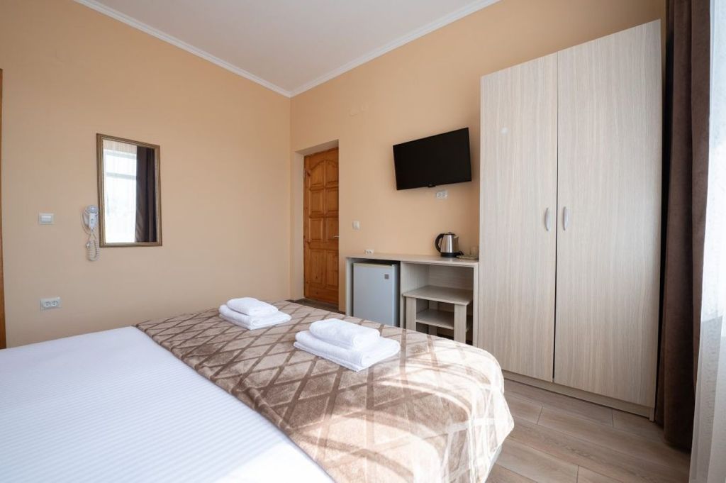 Гостевой дом «Матис»: отдых в сердце южного курорта Погрузитесь в атмосферу уюта и комфорта в гостевом доме «Матис», расположенном в живописном уголке курортного Адлера. Отель разместился на зелёном холме, окружённом пальмами, фруктовыми деревьями и яркими южными цветами — идеальное место для спокойного отдыха под ласковым солнцем. К вашим услугам — сезонный открытый бассейн, удобные шезлонги для релаксации и изящный фонтан, создающий особую атмосферу умиротворения. Расположение и инфраструктура Всего 15–20 минут отделяют вас от прекрасных пляжей Адлера: «Моне», «СССР», «Дельфин» и «Волна». В шаговой доступности находятся: * океанариум; * дельфинарий; * парк с детскими аттракционами и барами для взрослых. За 20 минут вы сможете добраться до парка аттракционов и олимпийских объектов в «Сириусе». Рядом с отелем — вся необходимая инфраструктура: магазины, аптеки, кафе, бары и рестораны. Питание На территории работает уютная столовая с разнообразным меню. Вас ждёт качественная, свежая ед