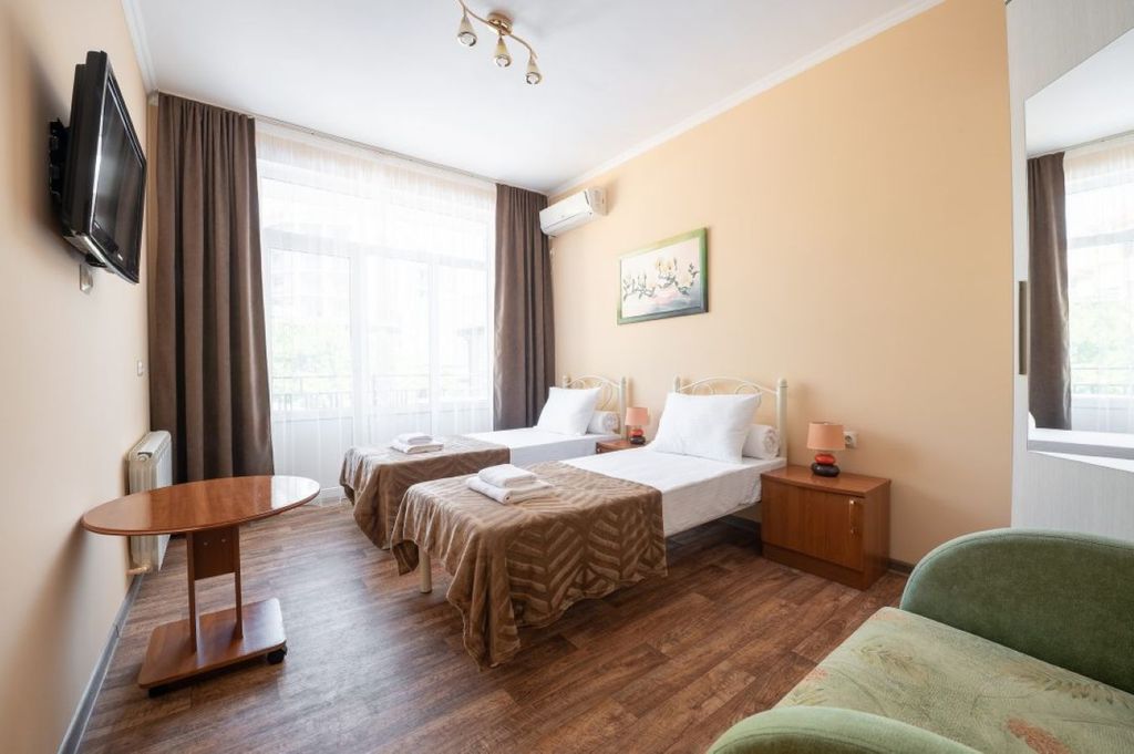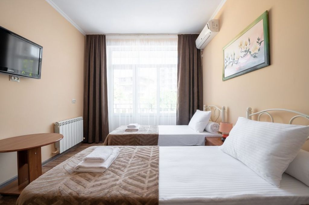Гостевой дом «Матис»: отдых в сердце южного курорта Погрузитесь в атмосферу уюта и комфорта в гостевом доме «Матис», расположенном в живописном уголке курортного Адлера. Отель разместился на зелёном холме, окружённом пальмами, фруктовыми деревьями и яркими южными цветами — идеальное место для спокойного отдыха под ласковым солнцем. К вашим услугам — сезонный открытый бассейн, удобные шезлонги для релаксации и изящный фонтан, создающий особую атмосферу умиротворения. Расположение и инфраструктура Всего 15–20 минут отделяют вас от прекрасных пляжей Адлера: «Моне», «СССР», «Дельфин» и «Волна». В шаговой доступности находятся: * океанариум; * дельфинарий; * парк с детскими аттракционами и барами для взрослых. За 20 минут вы сможете добраться до парка аттракционов и олимпийских объектов в «Сириусе». Рядом с отелем — вся необходимая инфраструктура: магазины, аптеки, кафе, бары и рестораны. Питание На территории работает уютная столовая с разнообразным меню. Вас ждёт качественная, свежая ед