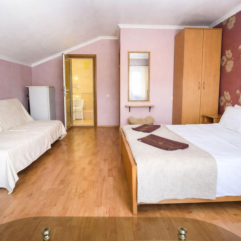 Уютный гостевой дом у моря: отдых среди сосен с панорамными видами Приглашаем вас провести незабываемый отпуск в уютном гостевом доме, окружённом ароматным сосновым бором. Всего 5 минут пешком — и вы на берегу моря, где соседствуют песчаный и галечный пляжи — выбирайте тот, что ближе вашему настроению! Идеальное расположение Наш гостевой дом — настоящая находка для ценителей комфортного отдыха: * 5 минут до моря — лёгкий прогулочный маршрут без подъёмов и спусков; * разнообразие пляжей: мягкий песок для солнечных ванн и галечный берег для любителей кристально чистой воды; * всё необходимое рядом: кафе, рестораны, столовые и магазины — в пешей доступности (5–10 минут ходьбы). Варианты размещения Мы предлагаем номера разных категорий под любые потребности: * стандартные 2‑местные и 3‑местные номера — идеально для пар или небольших семей; * комфортабельные семейные номера с балконом, просторный вариант для дружной компании — оборудованы двуспальными кроватями и раскладным диваном, вмещают