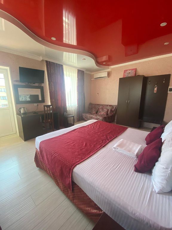 В нашем гостевом доме 10 номеров, номера рассчитаны от 1 до 5 человек, все оборудованы кондиционерами, холодильниками, ТВ, электрочайниками, полотенцами (не пляжными), постельным бельём, для общего пользования есть зона для приготовления пищи (плита газовая), СВЧ, гладильная доска с утюгом, стиральная машинка (300 рублей), мангальная зона, парковка на три машины. В номерах не курят! Шумные компании — это не к нам! Обязательно соблюдаем время тишины с 23:00! Уборка в номерах осуществляется на 6-е сутки со сменой постельного и полотенец, на третьи сутки — влажная уборка номера. В шаговой доступности супермаркеты, кафе, столовые, аптеки. До моря 20−25 минут пешком. Для вашего комфорта есть бесплатный трансфер с общественной остановки до канатки («Олимп»), («Сафари-парк»), аквапарка — «Золотая бухта». Красивые набережные, океанариум, парк аттракционов, аквапарк «Дельфин», остановки общественного транспорта. Также для любителей экскурсий у нас есть возможность заранее вам предоставить ин