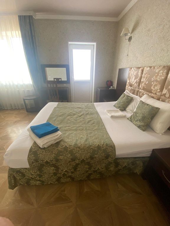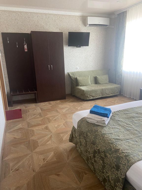 В нашем гостевом доме 10 номеров, номера рассчитаны от 1 до 5 человек, все оборудованы кондиционерами, холодильниками, ТВ, электрочайниками, полотенцами (не пляжными), постельным бельём, для общего пользования есть зона для приготовления пищи (плита газовая), СВЧ, гладильная доска с утюгом, стиральная машинка (300 рублей), мангальная зона, парковка на три машины. В номерах не курят! Шумные компании — это не к нам! Обязательно соблюдаем время тишины с 23:00! Уборка в номерах осуществляется на 6-е сутки со сменой постельного и полотенец, на третьи сутки — влажная уборка номера. В шаговой доступности супермаркеты, кафе, столовые, аптеки. До моря 20−25 минут пешком. Для вашего комфорта есть бесплатный трансфер с общественной остановки до канатки («Олимп»), («Сафари-парк»), аквапарка — «Золотая бухта». Красивые набережные, океанариум, парк аттракционов, аквапарк «Дельфин», остановки общественного транспорта. Также для любителей экскурсий у нас есть возможность заранее вам предоставить ин