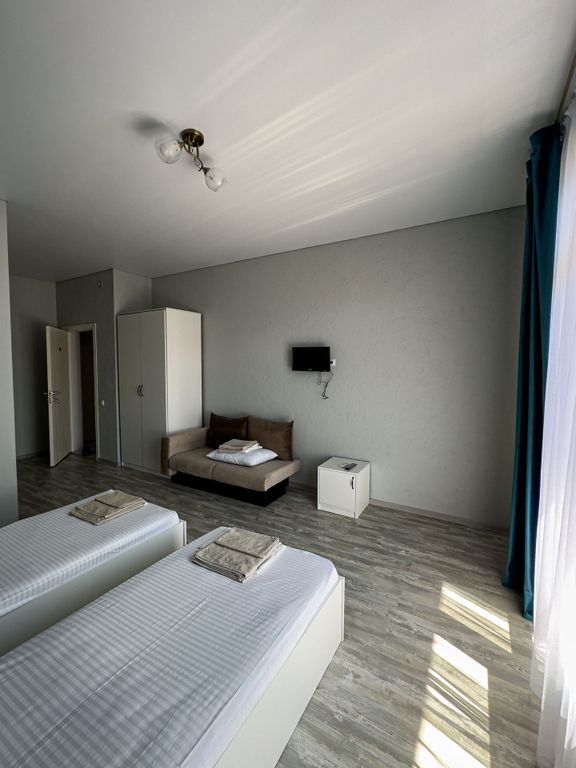 Гостевой дом «Велес» в п. Лазаревское — это современный комфорт в стиле хай-тек, созданный для вашего незабываемого отдыха. Просторная территория с бассейном и шезлонгами приглашает расслабиться и насладиться солнечными днями. Для вашего удобства оборудована общая кухня, где можно самостоятельно готовить любимые блюда, а также зона с мангалом — отличное место для дружеских вечеров и ароматных барбекю. В гостевом доме представлены три категории номеров с собственными удобствами, каждая из которых сочетает в себе стильный дизайн и функциональность. «Велес» — идеальное место для тех, кто ценит комфорт и свободу выбора.