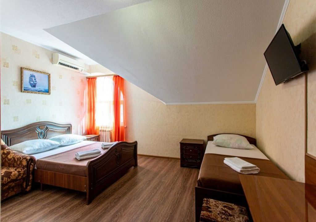 Гостевой дом Фиеста — уютное место для остановки и отдыха в курортном поселке Кабардинка. Уникальное месторасположение отеля позволяет постояльцам, находясь в непосредственной близости от всей инфраструктуры курортного поселка: кафе, баров и ресторанов, столовых и магазинов отдохнуть от повседневной суеты, шума и скопления людей. А путь до ближайшего пляжа займет всего 10 минут пешком. Местоположение гостевого дома Фиеста — центр поселка. За счет такого выгодного размещения у гостей есть возможность прогуляться в центе, где в шаговой доступности много веселья и развлечений. На территории гостевого дома имеется большой подогреваемый бассейн с автоматической отчисткой и ежедневным обрабатыванием воды. Территория гостевого дома оборудована столиками для отдыха и шезлонгами. К услугам гостей озеленённый уютный двор с мангальной зоной, детский уголок, бесплатный WI-FI в местах общего пользования, бар, и не большая кухня для самостоятельного приготовления. Сразу за гостевым домом расположены
