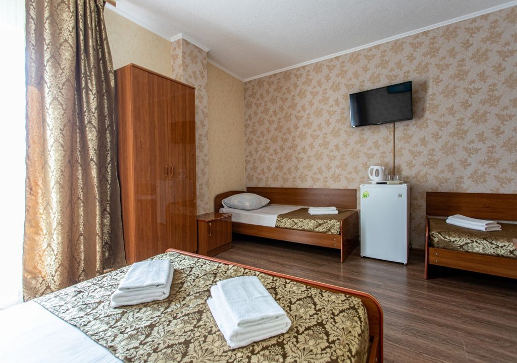 Гостевой дом Фиеста — уютное место для остановки и отдыха в курортном поселке Кабардинка. Уникальное месторасположение отеля позволяет постояльцам, находясь в непосредственной близости от всей инфраструктуры курортного поселка: кафе, баров и ресторанов, столовых и магазинов отдохнуть от повседневной суеты, шума и скопления людей. А путь до ближайшего пляжа займет всего 10 минут пешком. Местоположение гостевого дома Фиеста — центр поселка. За счет такого выгодного размещения у гостей есть возможность прогуляться в центе, где в шаговой доступности много веселья и развлечений. На территории гостевого дома имеется большой подогреваемый бассейн с автоматической отчисткой и ежедневным обрабатыванием воды. Территория гостевого дома оборудована столиками для отдыха и шезлонгами. К услугам гостей озеленённый уютный двор с мангальной зоной, детский уголок, бесплатный WI-FI в местах общего пользования, бар, и не большая кухня для самостоятельного приготовления. Сразу за гостевым домом расположены