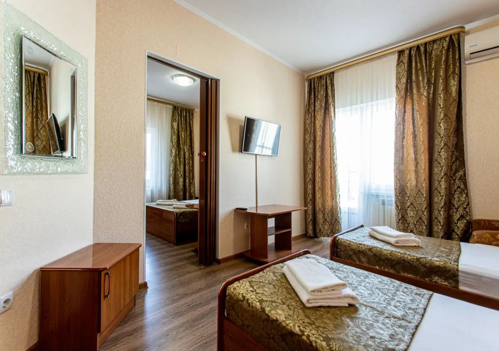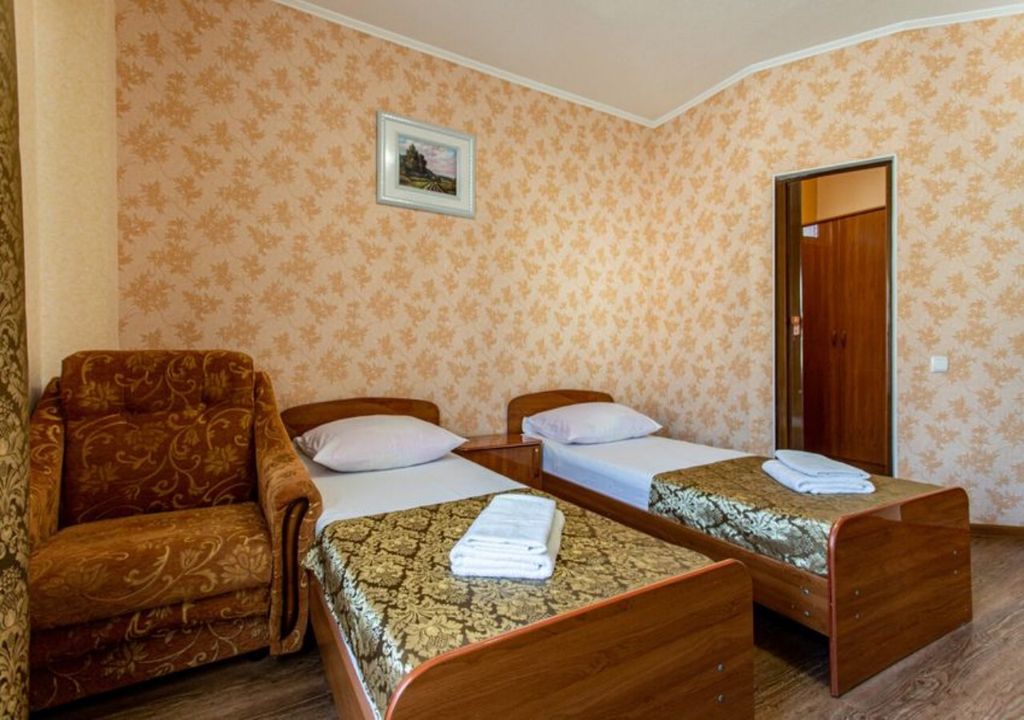 Гостевой дом Фиеста — уютное место для остановки и отдыха в курортном поселке Кабардинка. Уникальное месторасположение отеля позволяет постояльцам, находясь в непосредственной близости от всей инфраструктуры курортного поселка: кафе, баров и ресторанов, столовых и магазинов отдохнуть от повседневной суеты, шума и скопления людей. А путь до ближайшего пляжа займет всего 10 минут пешком. Местоположение гостевого дома Фиеста — центр поселка. За счет такого выгодного размещения у гостей есть возможность прогуляться в центе, где в шаговой доступности много веселья и развлечений. На территории гостевого дома имеется большой подогреваемый бассейн с автоматической отчисткой и ежедневным обрабатыванием воды. Территория гостевого дома оборудована столиками для отдыха и шезлонгами. К услугам гостей озеленённый уютный двор с мангальной зоной, детский уголок, бесплатный WI-FI в местах общего пользования, бар, и не большая кухня для самостоятельного приготовления. Сразу за гостевым домом расположены