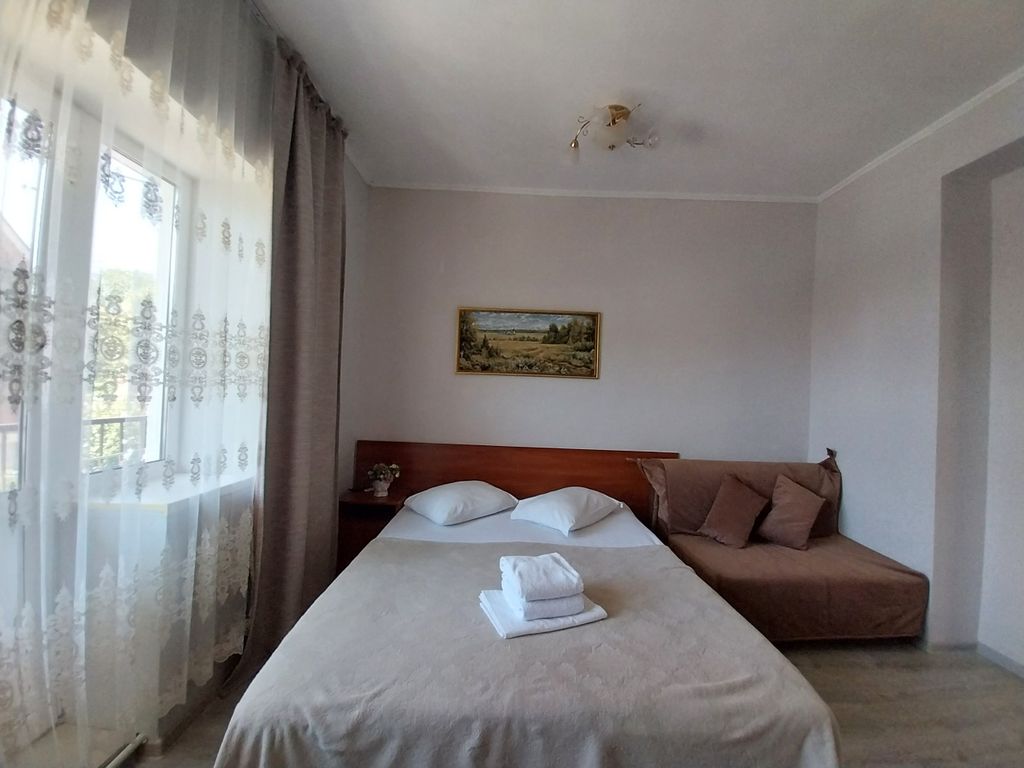 К услугам гостей современные и комфортные комнаты с кондиционером, холодильником, телевизором с плоским экраном и собственной ванной комнатой с душем. Предоставляются постельное белье, полотенца. По запросу: мыло. шампунь, фен, детская кроватка. Из комнат открываются живописные виды на море, горы и утопающий в зелени поселок. На территории усадьбы: имеется кухня со всем необходимым оборудованием и посудой, комфортабельная беседка с мангалом (бесплатно), детский стульчик для кормления, современная детская площадка и бассейн (бесплатно), парковка , клумбы, зеленая зона. Принимаем с детками любого возраста. С животными не принимаем. Усадьба "Агат" в Архипо-Осиповке уютно расположилась в 5-8 минутах пешей прогулки до набережной и пляжа. В непосредственной близости от 2 до 10 минут ходьбы находятся все необходимые магазины, кафе, столовые, экскурсионные бюро, аквапарк "GoodZone" в 2 минутах, дельфинарий, океанариум, боулинг, кальян-бар и др. В усадьбе "Агат"