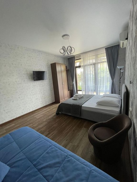 Гостевой дом в Сириусе — уютное место для комфортного отдыха у моря. Небольшой и современный, он включает всего 5 просторных номеров категории «люкс», что гарантирует тишину, спокойствие и индивидуальный подход к каждому гостю. Каждый номер оборудован всем необходимым для удобного проживания: сплит-система и кондиционер поддерживают комфортную температуру в любое время года, собственный санузел включает душевую, туалет, умывальник и зеркало с подсветкой. Гостям предоставляются гигиенические принадлежности и полотенца. В номере — удобная кровать и раскладной диван, что позволяет разместить до 4 человек. Также есть телевизор, Wi-Fi, холодильник, чайник, чашки и чай, а также стол и стулья для отдыха или работы. На территории гостевого дома предусмотрена общая кухня, полностью оснащённая всем необходимым для самостоятельного приготовления пищи. Для удобства гостей доступны утюг, гладильная доска и стиральная машина общего пользования. Во дворе создана уютная зона отдыха: мангал для пригото