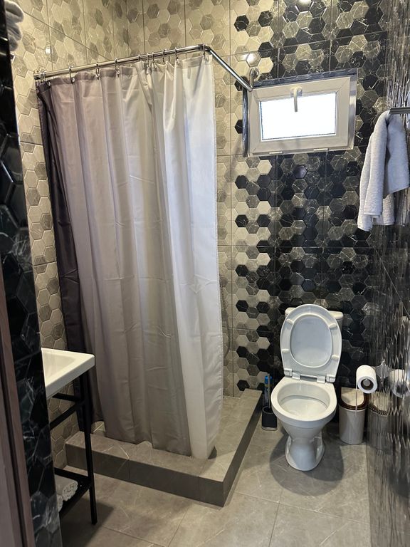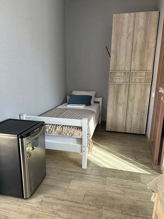 Просторный трёхместный номер без балкона: двухспальная и односпальная кровати, санузел в номере, кондиционер и смарт-ТВ для комфортного отдыха.
