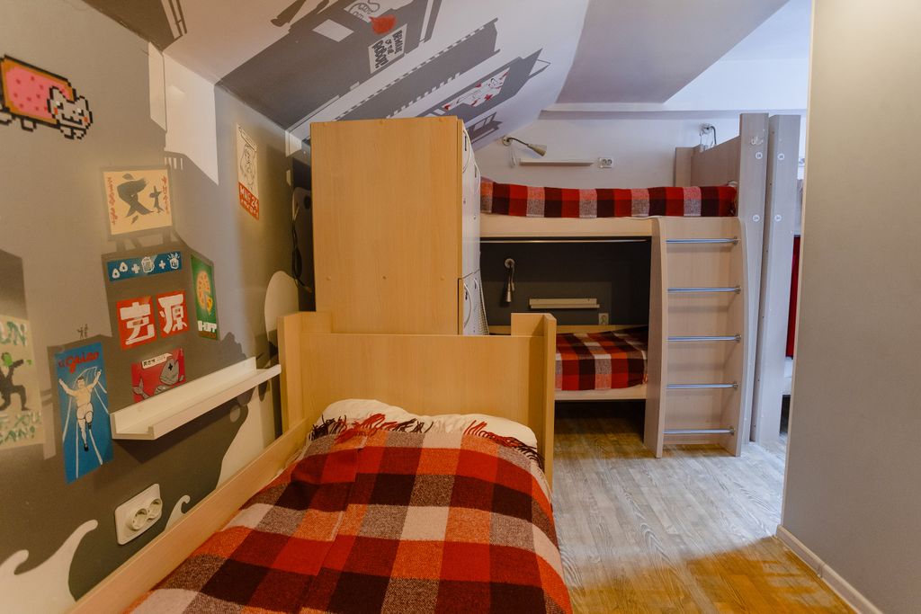 Арт-хостел Смайл с радостью примет у себя гостей на любой срок! Арт-хостел Смайл - современный, яркий и уютный хостел на главной пешеходной улице в историческом центре Нижнего Новгорода: главная пешеходная улица, три минуты до Нижегородского Кремля, рядом рестораны, кафе и сувенирные магазины на любой вкус. Мы селим гостей в дизайнерские номера, стилистика которых посвящена всемирно известным городам. Отдельные номера: 2-местные «Париж» и «Венеция». Общие номера: 5-местный «Токио» 6-местные «Гавана» и «Рио» 8-местные «Лондон» и «Нью-Йорк» Общие номера – смешанные, но по возможности мы селим женщин и мужчин отдельно. Для уточнения деталей обратитесь к администратору хостела. В хостеле есть все для комфортного проживания как на одни сутки, так и на длительный срок: 1. Кухня со всем необходимым для комфортной готовки; 2. Бесплатные чай, кофе, соль и сахар; 3. Стиральная машина; 4. Индивидуальные шкафчики, закрывающиеся на ключ; 5. Уединенное спальное место со шторкой, личной полкой, розет