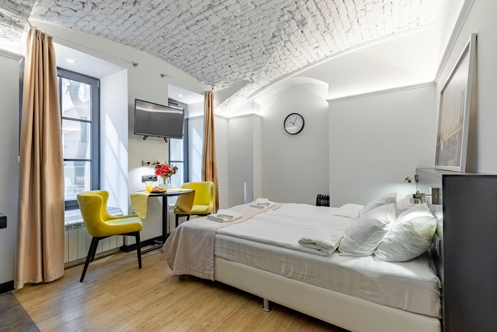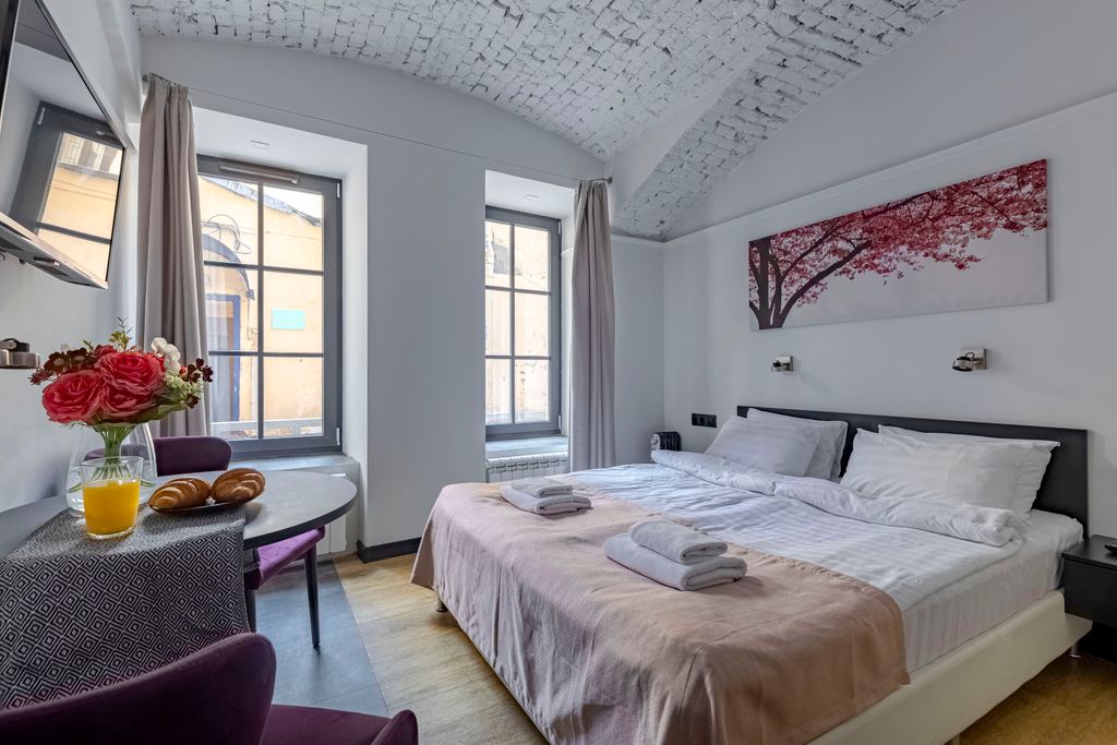Уютный апарт-отель в центре СПб. Апартаменты оборудованы всем необходимым для комфортной жизни. В каждом апартаменте свой кухонный уголок со всей необходимой техникой. На кухне кофе, соль, сахар, масло, кофейные капсулы для кофе машины. В санузле бойлер, душ, туалет, полы с подогревом.