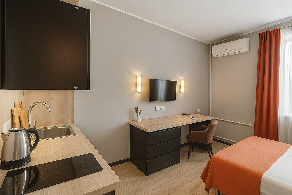 Metro Rooms — свобода жить по-своему Metro Rooms — апарт-отель в Москве с категориями от бюджетных до премиумных, где каждый гость найдёт оптимальный уровень комфорта. Мы созданы тех, кто ценит удобство, доступность и свободу выбора Условия заезда: - Заезд: с 15:00 - Выезд: до 12:00 - Ранний заезд и поздний выезд — по запросу - Залог (при проживании с животными) Почему Metro Rooms? -2 минуты до метро → экономите время и легко добираетесь до центра Москвы. -Апартаменты для компаний до 5 человек → удобно для семьи, друзей или деловых коллег. -Кухня во всех апартаментах → готовьте сами или наслаждайтесь доставкой. - Разные категории и цены → выбирайте комфорт под свой бюджет: от стандартного до премиум-уровня. -Wi-Fi и рабочие зоны → удобно для командировок и удалённой работы. -Гибкость проживания → от 1 ночи до нескольких месяцев. -Документы для организаций → полный пакет для корпоративных клиентов. Локации Metro Rooms: - 2 минуты до метро «Окружная» + рядом МЦД и БКЛ → быстрый
