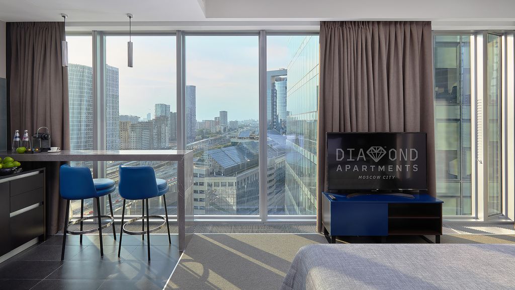 Апарт-отель Diamond – это единственный пятизвездочный апарт-отель в Москва-Сити, расположенный в южной башне ОКО. Номерной фонд состоит из 67 дизайнерских апартаментов площадью от 25 до 110 кв.