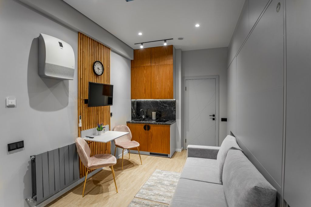 Современный Апарт-отель, с уровнем обслуживания и сервиса уровня трех звезд. Расположен в центре города Сочи. Ближайший пляж в пяти минутах ходьбы. Каждый номер оформлен по-персональному дизайн-проекту в стиле европейской классики. Полная комплектация современной мебелью и бытовой техникой для комфортного проживания на протяжении всего срока. Оборудованная кухня и обеденная зоны, позволяющие следить за своим рационом без привязки к меню и режиму работы местных кафе и ресторанов.