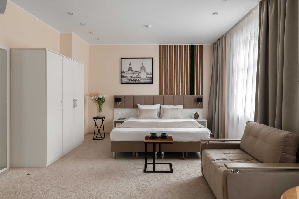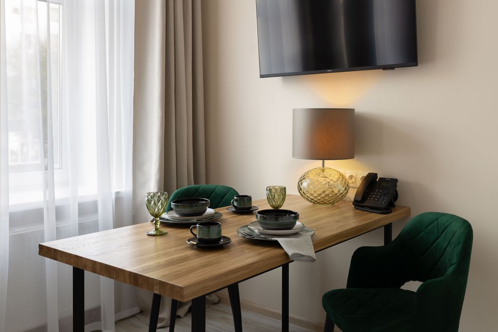 Представляем вашему вниманию новый современный 4х звездочный апарт - отель Greenstone. Отель расположен в центральном административном округе, в его историческом культурном и деловом центре, который прекрасно сочетает в себе деловую активность, сферу развлечений и спокойную размеренную жизнь. Отель находится в 620 метрах от м. Проспект мира. Отель включает в себя 22 двухместных номера повышенной категории. Все комнаты апарт-отеля оформлены в современном стиле и наполнены самым необходимым для длительного и комфортного проживания: Каждый номер оборудован: - кухонным гарнитуром с встраиваемой новой техникой: (варочная панель, вытяжка, микроволновая печь) чайник, посуда. - индивидуальной системой кондиционирования - мини сейфом, интерактивным телевидением - кровать двух спальная - связью для вызова персонала