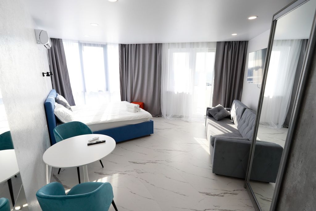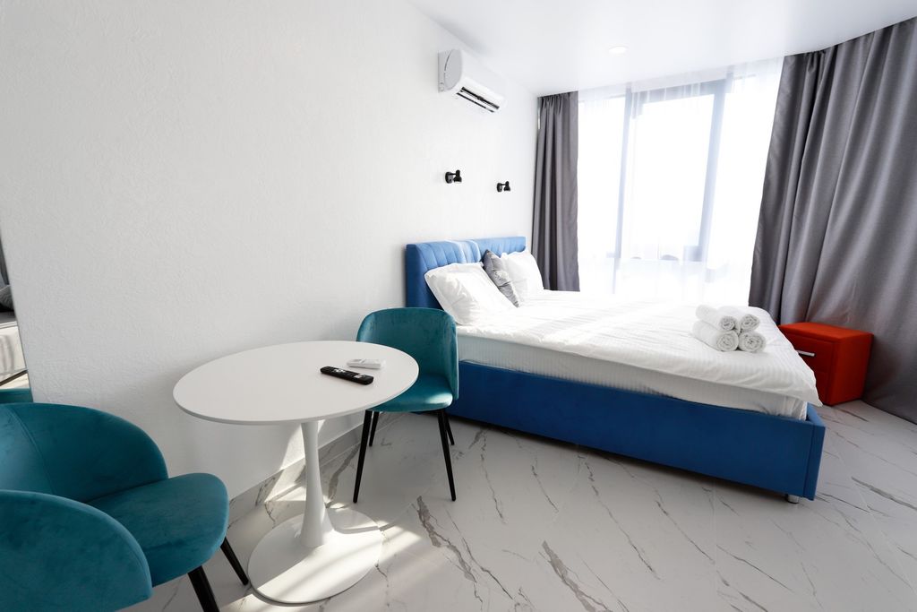 Апарт‑отель «Симфония» в жилом комплексе «Морская симфония» — это воплощение современного комфорта и стиля жизни у моря. Мы предлагаем гостям уникальное сочетание премиального сервиса, продуманной инфраструктуры и безупречного расположения, позволяющего одинаково комфортно проживать как несколько дней, так и целый год. Наши апартаменты бизнес‑класса представлены в трёх форматах: уютные студии, просторные апартаменты и роскошные пентхаусы, каждый из которых рассчитан на комфортное размещение от 1 до 6 гостей. Все помещения спроектированы с особым вниманием к деталям: в каждом номере вас ждёт полностью оборудованная кухня с современной техникой и посудой, где можно с лёгкостью приготовить любимые блюда. Особую атмосферу создают панорамные окна с завораживающими видами на море — каждое утро вы будете просыпаться под живописные морские пейзажи, а закаты превратятся в незабываемое ежедневное зрелище. Инфраструктура комплекса продумана до мелочей для вашего удобства. На территории действует