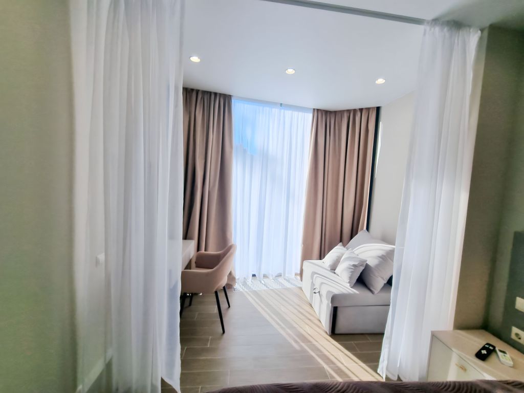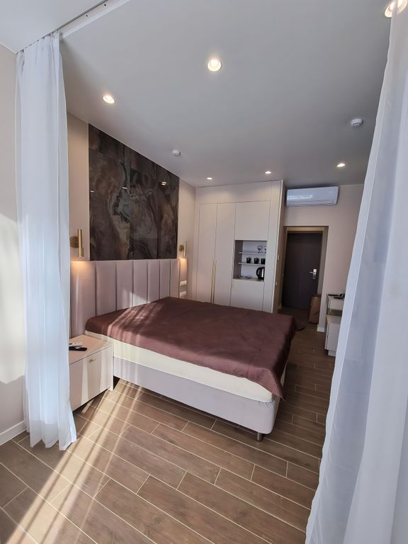Апарт отель mirror family 4* Прекраснвя локация: самый центр адлера, перекресток улиц молокова и кирова, рядом тц «плаза», центральный рынок, дорожная развязка в сторону имеретинки, красной поляны и центра сочи. До аэропорта 5 минут на такси, до ж/д вокзала ещё меньше. В отеле имеются: зона с бассейном, в том числе детская зона, большая оборудованная детская площадка на территории, зона отдыха в сосновой роще с очагом для костра. Номер рассчитан на 3х человек. Кровать и диван кресло, чайник, посуда, холодильник, кондиционер, фен, средства гигиены, постельное бельё и полотенца. Интернет и телевидение. Пользование бассейном включено в стоимость проживания. Заселение после 14: 00, выселение до 12: 00. Выезд на заселение и выселение в нерабочее время с 23: 00 до 9: 00 оплачивается дополнительно 500 руб. В случае отмены бронь невозвратная. Страховой депозит 5000 рублей за сохранность имущества.