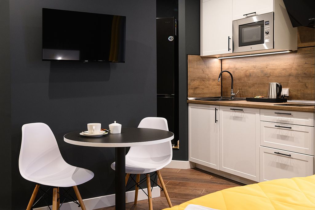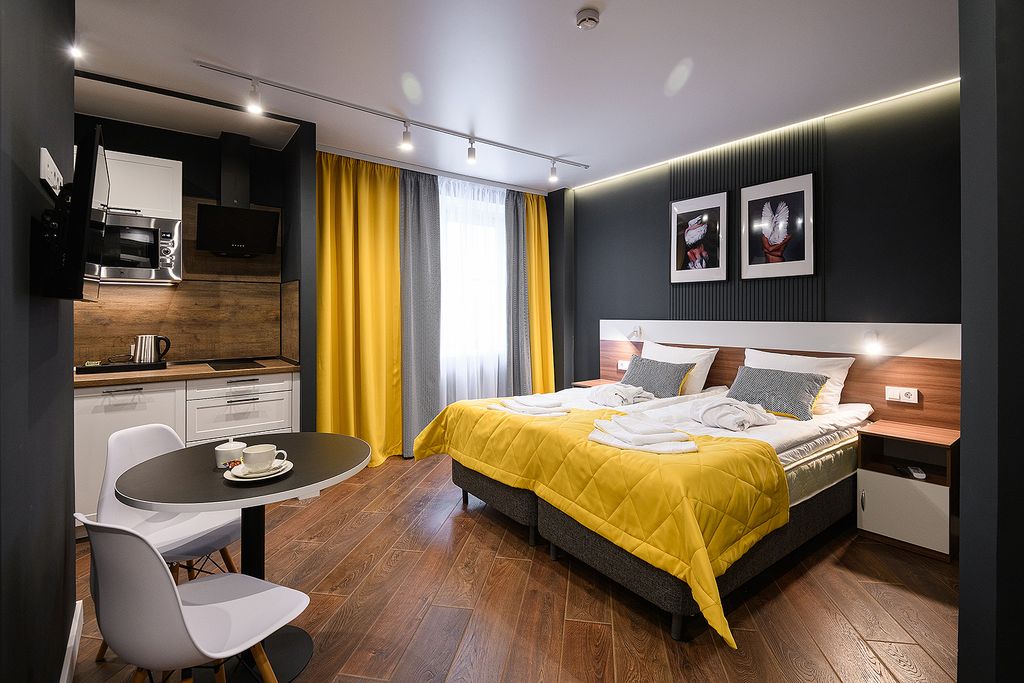 Представляем вашему вниманию новые апартаменты на Краснопутиловской 111. Благоприятные условия проживания помогут вам насладиться пребыванием в Санкт-Петербурге, а из просторных номеров Люкс открывается панорамный вид города. Апартаменты расположенные на пятом этаже многофункционального жилого комплекса, снабжены эффективной вентиляцией, кондиционерами, а также системой «тёплый пол». В здании находится Fitness House, магазин «Магнит» , кафе «Кулинария». Вы, несомненно, оцените дизайнерскую мебель, качественные материалы отделки, зеркало с подсветкой в ванной комнате и кровати с ортопедическими матрасами. Обязательно сообщите нам, какой тип кроватей Вам предпочтителен — раздельные или большая двуспальная. К Вашим услугам круглосуточная стойка регистрации. Каждый номер укомплектован необходимым для проживания и работы как на короткий, так и на длительный срок. Собственная кухня оснащена необходимой техникой: микроволновой печью, электрическим чайником, плитой, холодильником, посудомое