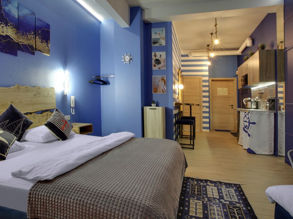 Отель расположен в 15 минутах ходьбы от станции метро электрозаводская, на набережной реки яуза, в историческом сталинском доме. Погулять и покататься на велосипедах и самокатах можно по набережной яузы. Тем более, что у дома есть стоянка электросамокатов, а у входа в отель есть велопарковка. По набережной до кремля всего 8 км., это примерно 15 минут на машине. До парка сокольники тоже недалёко, можно дойти пешком за 20 минут. Яуза впадает в москву реку всего в 7, 5 километрах, советуем проехать этот маршрут на велосипеде. В номерах отеля атмосфера лофта с морским дизайном, сочетающая простоту и функциональность. Есть небольшая мини-кухня и изюминка нашего отеля - персональный вход в финскую сауну "леший" (сауна оплачивается отдельно). АКЦИЯ! При размещении от 7 дней, сауна в подарок! Стойка регистрации работает 24/7 Бесплатный wi-fi Бесплатная парковка вокруг дома. Отдельные входы в номера не через стойку ресепшн. Лофт отель матросский приветствует всех гостей. У нас люб
