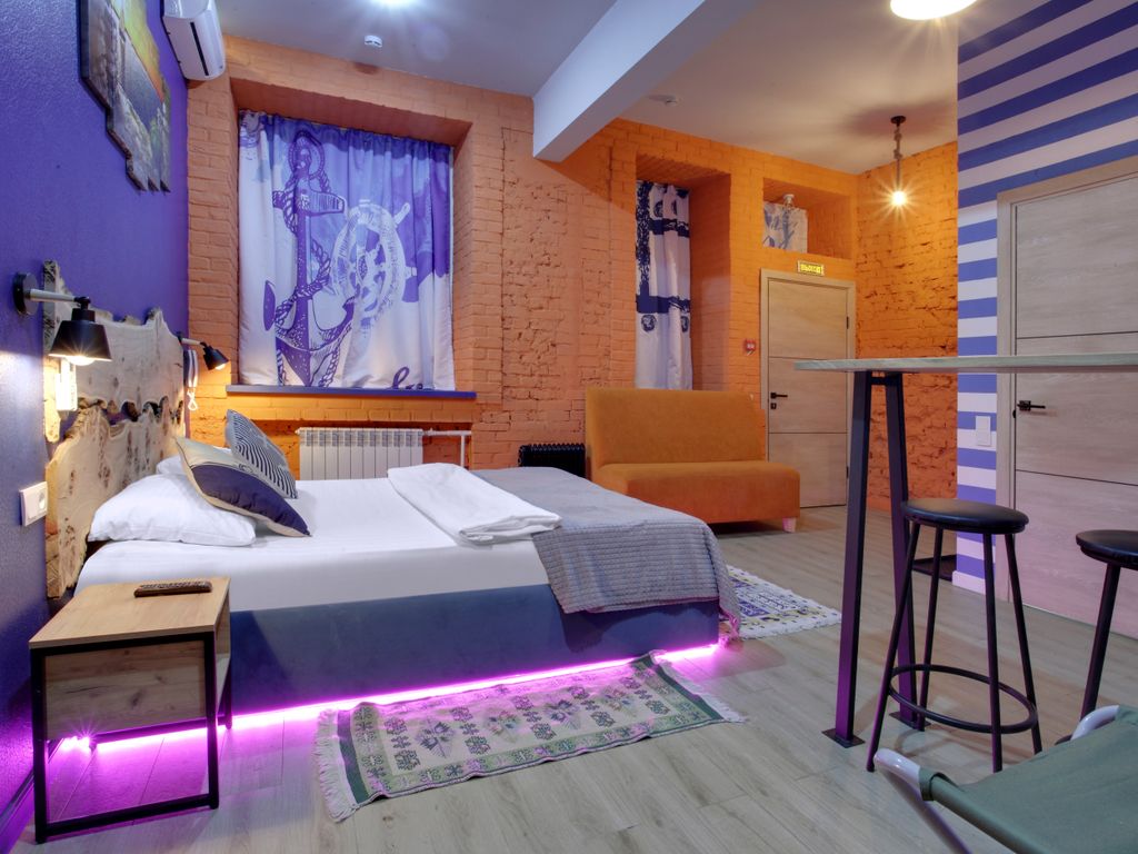 Отель расположен в 15 минутах ходьбы от станции метро электрозаводская, на набережной реки яуза, в историческом сталинском доме. Погулять и покататься на велосипедах и самокатах можно по набережной яузы. Тем более, что у дома есть стоянка электросамокатов, а у входа в отель есть велопарковка. По набережной до кремля всего 8 км., это примерно 15 минут на машине. До парка сокольники тоже недалёко, можно дойти пешком за 20 минут. Яуза впадает в москву реку всего в 7, 5 километрах, советуем проехать этот маршрут на велосипеде. В номерах отеля атмосфера лофта с морским дизайном, сочетающая простоту и функциональность. Есть небольшая мини-кухня и изюминка нашего отеля - персональный вход в финскую сауну "леший" (сауна оплачивается отдельно). АКЦИЯ! При размещении от 7 дней, сауна в подарок! Стойка регистрации работает 24/7 Бесплатный wi-fi Бесплатная парковка вокруг дома. Отдельные входы в номера не через стойку ресепшн. Лофт отель матросский приветствует всех гостей. У нас люб
