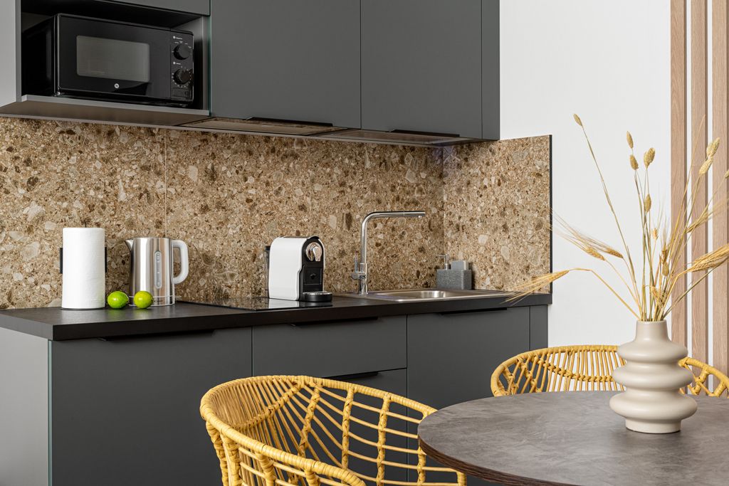 Апарт-отель "studio 15" предлагает 15 уникальных номеров. Каждый апартамент, будь то номер высшей категории "студия" или первой категории, отличается своим неповторимым дизайном и продуманной планировкой. Мы стремимся создать атмосферу, в которой каждый гость почувствует себя как дома. Два корпуса – один уровень комфорта: Отель состоит из двух корпусов с отдельными входами. В первом корпусе находятся номера с 1 по 7, а во втором – с 8 по 15. Стойка ресепшн расположена в первом корпусе, где наш администратор готов помочь вам с 09:00 до 18:00 ежедневно. Однако не стоит беспокоиться о заселении в нерабочее время – мы предлагаем удобную систему бесконтактного заселения по коду и онлайн-регистрацию, обеспечивая вам круглосуточный доступ в отель. Всё для вашего удобства: "studio 15" предлагает не просто номера, а полноценные апартаменты с улучшенной планировкой и дизайном. В каждом номере вас ждет: Холодильник и кухонная бытовая техника: приготовьте любимы
