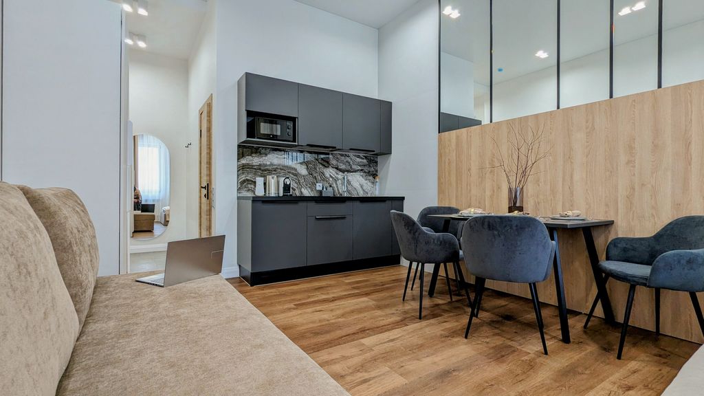 Апарт-отель "studio 15" предлагает 15 уникальных номеров. Каждый апартамент, будь то номер высшей категории "студия" или первой категории, отличается своим неповторимым дизайном и продуманной планировкой. Мы стремимся создать атмосферу, в которой каждый гость почувствует себя как дома. Два корпуса – один уровень комфорта: Отель состоит из двух корпусов с отдельными входами. В первом корпусе находятся номера с 1 по 7, а во втором – с 8 по 15. Стойка ресепшн расположена в первом корпусе, где наш администратор готов помочь вам с 09:00 до 18:00 ежедневно. Однако не стоит беспокоиться о заселении в нерабочее время – мы предлагаем удобную систему бесконтактного заселения по коду и онлайн-регистрацию, обеспечивая вам круглосуточный доступ в отель. Всё для вашего удобства: "studio 15" предлагает не просто номера, а полноценные апартаменты с улучшенной планировкой и дизайном. В каждом номере вас ждет: Холодильник и кухонная бытовая техника: приготовьте любимы