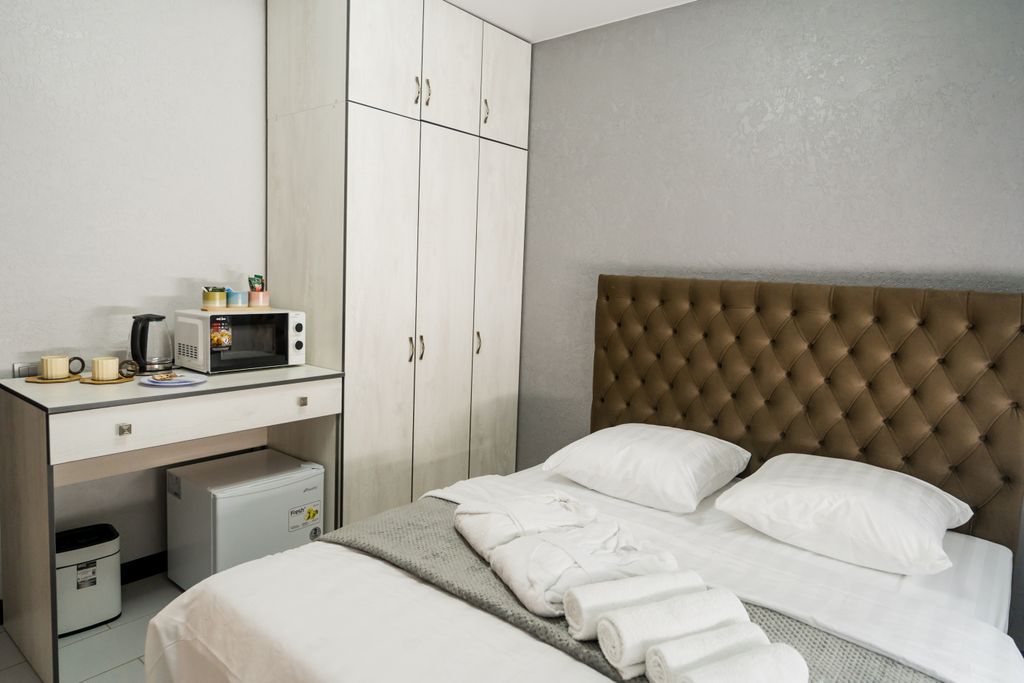 Номера с дизайнерским ремонтом в новом апарт-отеле Amazonka, оснащены оборудованной кухонной зоной, ванная комната оснащена душевой кабиной. Апартамент имеет современный и лаконичный дизайн, выполненный в спокойных оттенках. Также в номерах есть всё необходимое техническое оборудование: Чайная станция, посуда, микроволновая печь, холодильник, телевизор, фен. Мы с нетерпением ждем наших гостей.