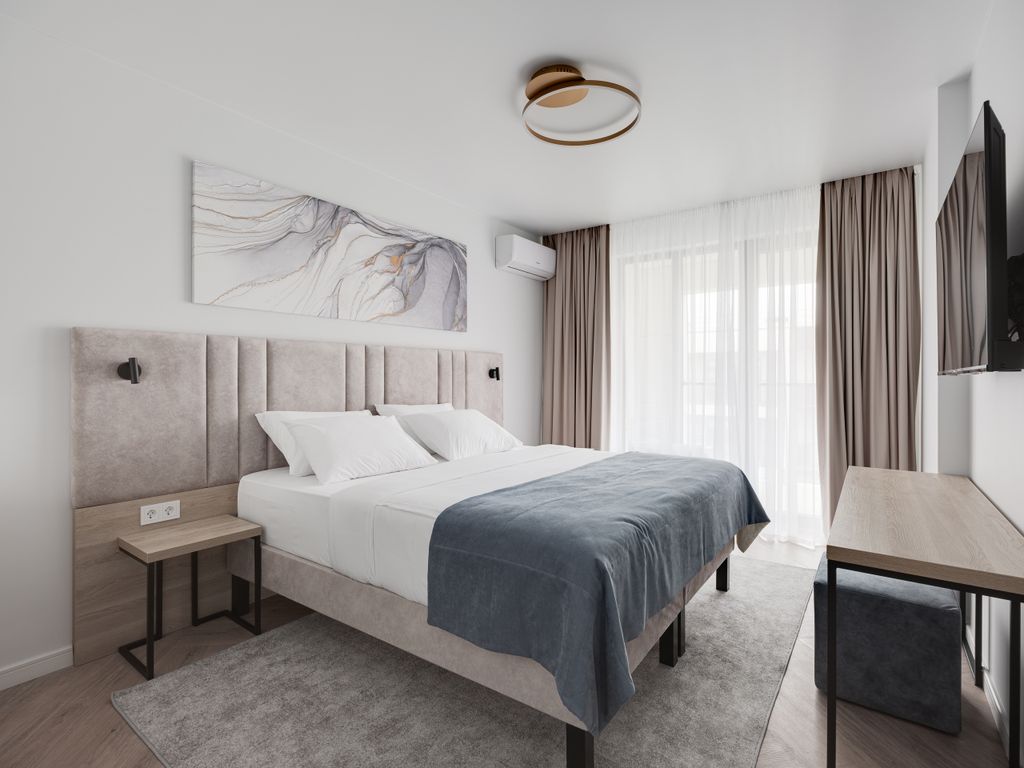 На побережье Черного моря в городе Анапа открыл для Вас свои двери современный апарт-отель «Европа». На закрытой, охраняемой территории мы предусмотрели все, чтобы ваш отдых стал комфортным, безопасным и запоминающимся. Внутри апарт-отеля «Европа» расположен двор-сад с местами для отдыха. Мы постарались сделать его максимально приватным, изолировав от уличного шума и посторонних взглядов. Пространства для игр, спорта, отдыха или медитации разделены и разумно удалены друг от друга. На территории апарт-отеля расположен открытый подогреваемый бассейн (начнет свою работу 01.05.2026). Бассейн состоит из двух чаш: взрослая чаша и чаша для детей. Зона отдыха у бассейна оборудована шезлонгами. Пляж апарт-отеля «Европа» находится в 650 метрах от отеля. Гости, путешествующие на собственном автотранспорте, могут воспользоваться услугой крытой охраняемой парковки. Для размещения гостей апарт-отель «Европа» предлагает апартаменты разных категорий с разной площадью от небольших апартаментов студия д