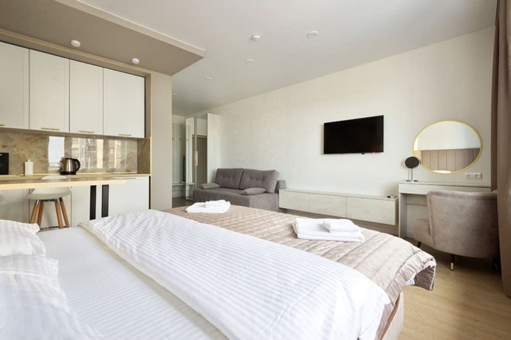 Апарт-отель «Карат Апарт» расположен рядом с МВЦ «Сибирь», «Кристалл Ареной» и ТРЦ «Июнь» — 15 минут до исторического центра города. Ресепшн находится на втором этаже здания с сентября 2024 года! На первом этаже здания расположены 2 кафе, в которых подается континентальный завтрак по цене 590 рублей за человека. Попасть в оба кафе можно, не выходя из здания. Апарт-отель отличает удобная транспортная доступность и большая парковка за шлагбаумом — у нас всегда есть где припарковаться. Просторные и светлые номера с качественным современным ремонтом, собственной кухней и кондиционером наполнены теплом и уютом. В них всё продумано для вашего удобства: просторная кровать с удобным матрасом и свежим постельным бельём, элегантные шторы «блэк-аут», большой телевизор, бесплатный Wi-Fi. Кроме того, вас порадует современный санузел с душем и туалетно-косметическими принадлежностями: феном, пушистыми полотенцами и тапочками. Наполнение номеров сделано по стандартам 4* гостиницы. Пожалуй, луч