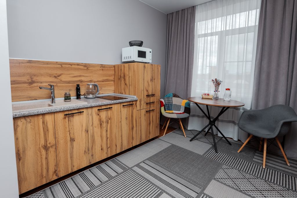Современный дизайн и домашний уют, располагающая атмосферы для отдыха как на сутки, так и на несколько дней в просторных номерах, оснащенных всем необходимым для комфортного проживания, никого не оставит равнодушным. На выбор 10 номеров разных категорий.