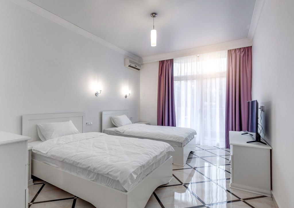 Апарт-отель «московский квартал» находится всего в 200 метрах от центральной набережной и массандровского пляжа, на закрытой зелёной территории. Здесь лёгко дышится, приятно гулять по тенистым дорожкам и любоваться панорамой ялты, чёрного моря и крымских гор. Для гостей предусмотрена бесплатная парковка, 10% скидка на посещение спа-центра, фитнес-клуба и салона красоты. На территории комплекса — уютные зоны отдыха, зелёные аллеи и фонтан, создающий атмосферу покоя и уюта. Комфортные апартаменты идеально подойдут для отдыха. В просторной столовой установлены: современный кухонный гарнитур с варочной панелью, духовым шкафом, большим холодильником, обеденный стол, комфортные стулья для завтраков, обедов и ужинов, а также есть удобный двуспальный диван-кровать. В спальне расположены: двуспальная кровать с ортопедическим матрасом 180х200, две тумбочки, вместительный шкаф для одежды. Туалетный столик с зеркалом и пуфом, телевизор со smart tv. Апартаменты расположены на 2-м, 3-м, 4-м и 5-м