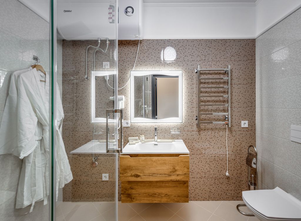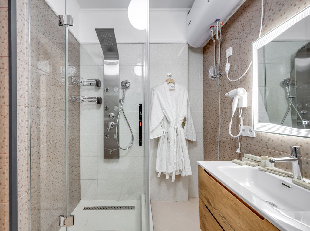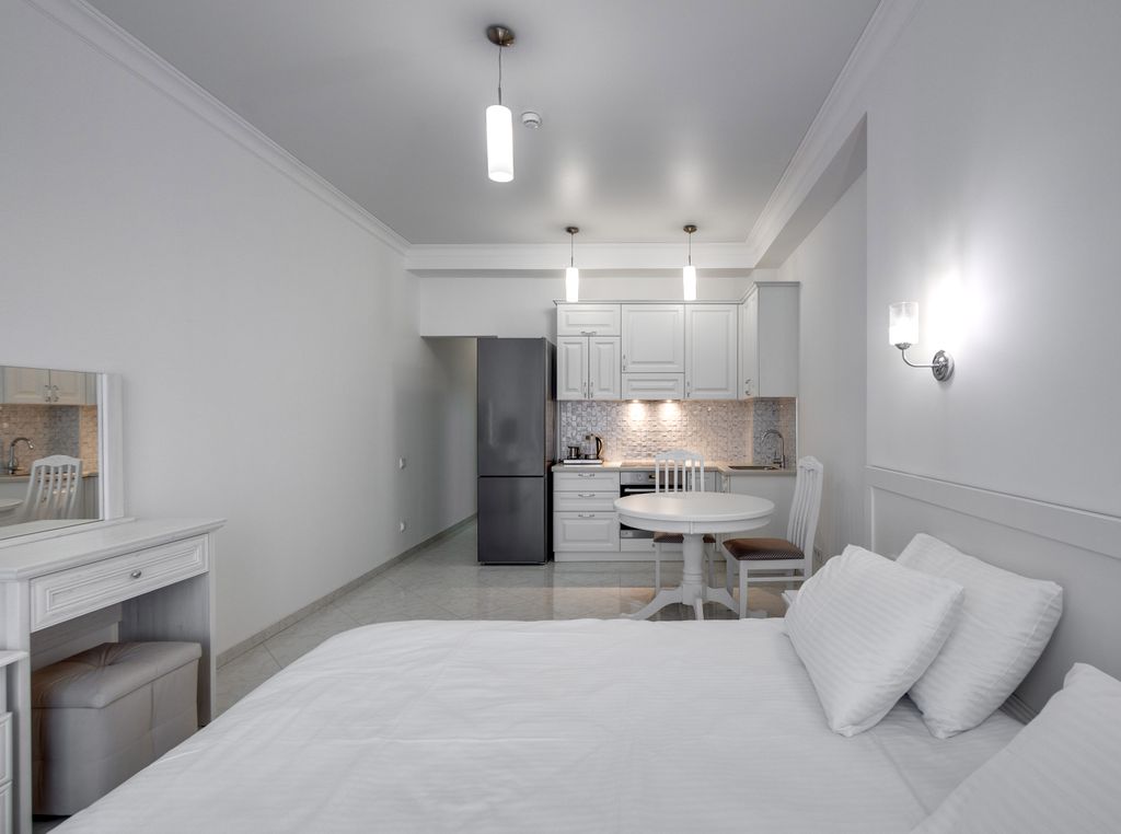 Апарт-отель «московский квартал» находится всего в 200 метрах от центральной набережной и массандровского пляжа, на закрытой зелёной территории. Здесь лёгко дышится, приятно гулять по тенистым дорожкам и любоваться панорамой ялты, чёрного моря и крымских гор. Для гостей предусмотрена бесплатная парковка, 10% скидка на посещение спа-центра, фитнес-клуба и салона красоты. На территории комплекса — уютные зоны отдыха, зелёные аллеи и фонтан, создающий атмосферу покоя и уюта. Комфортные апартаменты идеально подойдут для отдыха. В просторной столовой установлены: современный кухонный гарнитур с варочной панелью, духовым шкафом, большим холодильником, обеденный стол, комфортные стулья для завтраков, обедов и ужинов, а также есть удобный двуспальный диван-кровать. В спальне расположены: двуспальная кровать с ортопедическим матрасом 180х200, две тумбочки, вместительный шкаф для одежды. Туалетный столик с зеркалом и пуфом, телевизор со smart tv. Апартаменты расположены на 2-м, 3-м, 4-м и 5-м