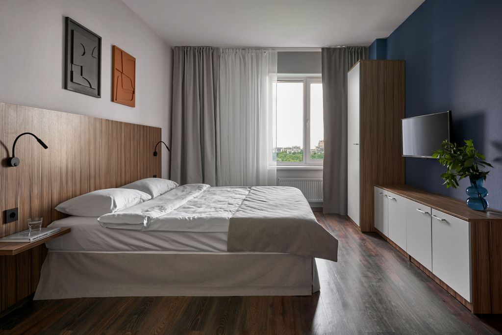 Элма Пулково — новый апарт-отель категории «Три звезды», расположенный в 10 минутах езды от аэропорта Пулково. До ближайших станций метро – московской и звёздной – можно добраться пешком за 15 минут. Поездка на такси до выставочного комплекса экспофорум займет 20 минут. В нашем апарт-отеле четыре категории апартаментов площадью от 24 до 53 кв. м. и вместимостью до 4-х человек. Все апартаменты оборудованы полностью оснащенной кухней, телевизором с функцией smart tv, доступом в интернет по wi-fi, собственной ванной комнатой. В шаговой доступности от апарт-отеля есть банкоматы, кафе, рестораны, пункты выдачи всех популярных маркетплейсов. В одном здании с нами находится продовольственный магазин. Под окнами расположен пулковский парк, который прекрасно подойдет для пробежек и прогулок. Апарт-отель Элма Пулково – прекрасный выбор для туристов, прибывающих в Петербург на собственном автомобиле. Гости могут бесплатно припарковать автомобиль у здания апарт-отеля или оставить машину в платн