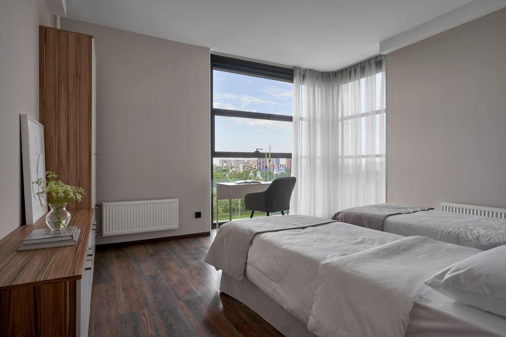 Элма Пулково — новый апарт-отель категории «Три звезды», расположенный в 10 минутах езды от аэропорта Пулково. До ближайших станций метро – московской и звёздной – можно добраться пешком за 15 минут. Поездка на такси до выставочного комплекса экспофорум займет 20 минут. В нашем апарт-отеле четыре категории апартаментов площадью от 24 до 53 кв. м. и вместимостью до 4-х человек. Все апартаменты оборудованы полностью оснащенной кухней, телевизором с функцией smart tv, доступом в интернет по wi-fi, собственной ванной комнатой. В шаговой доступности от апарт-отеля есть банкоматы, кафе, рестораны, пункты выдачи всех популярных маркетплейсов. В одном здании с нами находится продовольственный магазин. Под окнами расположен пулковский парк, который прекрасно подойдет для пробежек и прогулок. Апарт-отель Элма Пулково – прекрасный выбор для туристов, прибывающих в Петербург на собственном автомобиле. Гости могут бесплатно припарковать автомобиль у здания апарт-отеля или оставить машину в платн