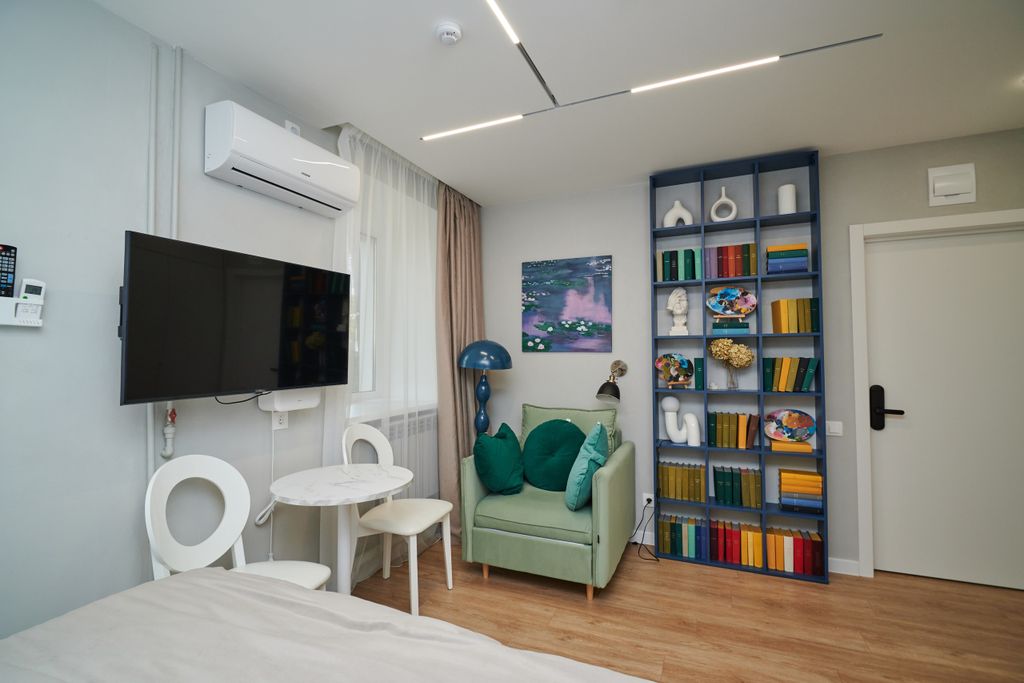 Апарт-отель расположен в самом сердце исторического Ярославля, рядом с церковью Ильи Пророка и парком Казанского собора. До любой достопримечательности — рукой подать. Удобно начинать путешествие в любую точку, весь общественный транспорт находится рядом. В нашем апарт-отеле система бесконтактного заселения, которая позволяет вам пройти процесс регистрации и заселения быстро и удобно, без необходимости личного общения. Для вашего комфорта отель оборудован собственной ванной комнатой и современной техникой: система очистки воздуха, кондиционер, телевизор, микроволновая печь, чайник, кофемашина, фен и др. В нашем фонде собрана 200-томная серия книг. Вы можете свободно брать книги на время вашего пребывания и наслаждаться чтением в уютной атмосфере нашего апарт-отеля. Откройте для себя отдых в номерах, названных в честь великих гениев: Моне, Дега, Дали, Ван Гога и Матисса. Погружайтесь в атмосферу творчества и ярких впечатлений!