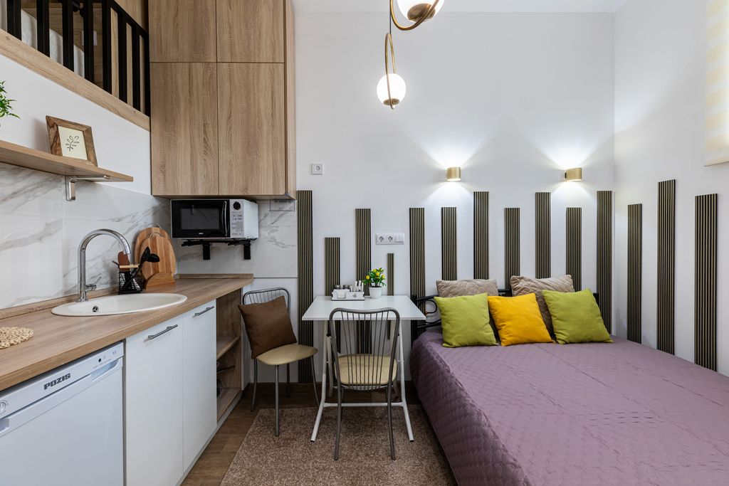 Апарт-отель расположен в самом центре города, под стенами кремля и в 5 минутах от станции "кремлевская". В шаговой доступности расположены: Кремль, дворец земледельцев, набережная реки казанка с велодорожками, пешеходной зоной и разнообразными кафе и ресторанами, "черное озеро" с катком зимой и озером с лебедями летом. В 10 минутах ходьбы находится улица баумана (местный арбат). Также, поблизости для посещения открыты кафе и небольшие магазинчики. В отеле предусмотрены бесконтактный заезд и выезд. Имеется платная парковка во дворе отеля-600р. ! В высокий сезон рекомендуем бронировать заранее! Для заселения доступны апартаменты с современным дизайном. Они оснащены кухонной зоной, большим телевизором, wi-fi, и кондиционером. Также имеется ванная комната с душевой кабиной, стиральной машиной, феном и гигиеническими принадлежностями.