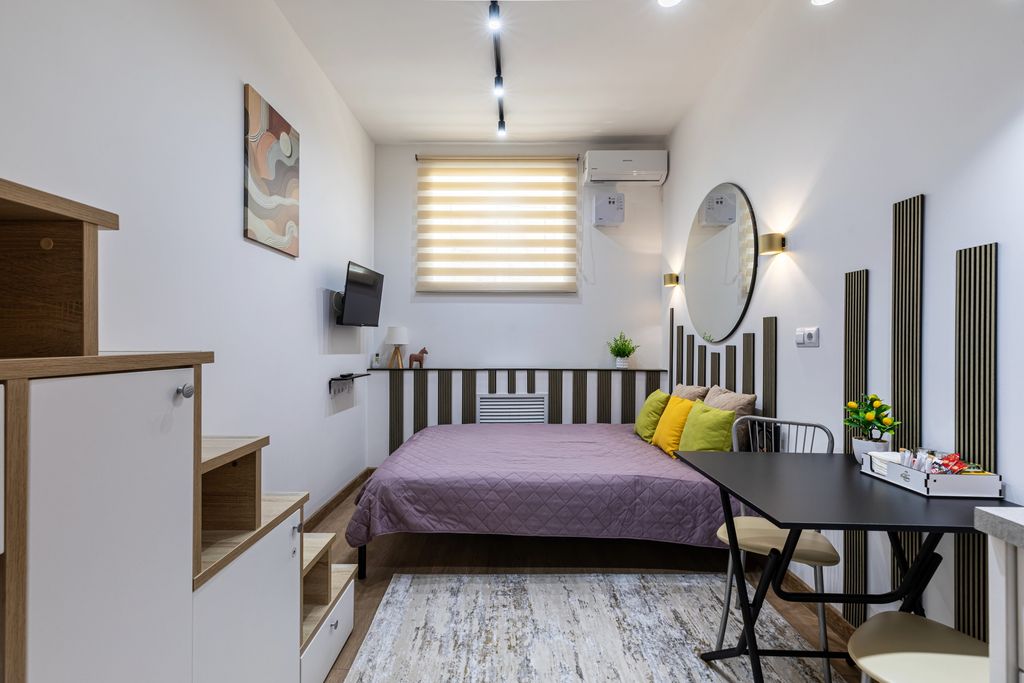 Апарт-отель расположен в самом центре города, под стенами кремля и в 5 минутах от станции "кремлевская". В шаговой доступности расположены: Кремль, дворец земледельцев, набережная реки казанка с велодорожками, пешеходной зоной и разнообразными кафе и ресторанами, "черное озеро" с катком зимой и озером с лебедями летом. В 10 минутах ходьбы находится улица баумана (местный арбат). Также, поблизости для посещения открыты кафе и небольшие магазинчики. В отеле предусмотрены бесконтактный заезд и выезд. Имеется платная парковка во дворе отеля-600р. ! В высокий сезон рекомендуем бронировать заранее! Для заселения доступны апартаменты с современным дизайном. Они оснащены кухонной зоной, большим телевизором, wi-fi, и кондиционером. Также имеется ванная комната с душевой кабиной, стиральной машиной, феном и гигиеническими принадлежностями.