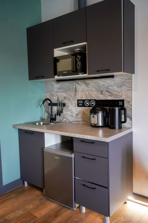 Уютный комфортный номер площадью от 18 м². В распоряжении гостей одна двуспальная кровать и двухъярусная кровать. Также в номере есть ванная комната, кухня, сейф, бесплатный Wi-Fi и ЖК-телевизор.