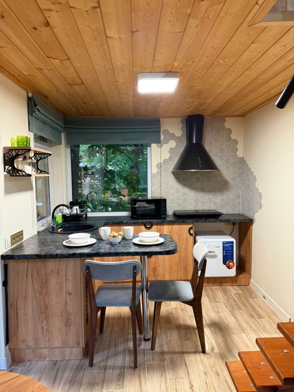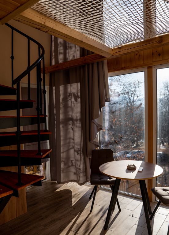 Предлагаем нашим гостям несколько видов размещения, на территории есть и отдельные дома и номера. Красивая локация со своим садом и видом на горы. Однокомнатный улучшенный номер на 4 человека с кухонной зоной и посудой, парковка, wi-fi, теплые полы.