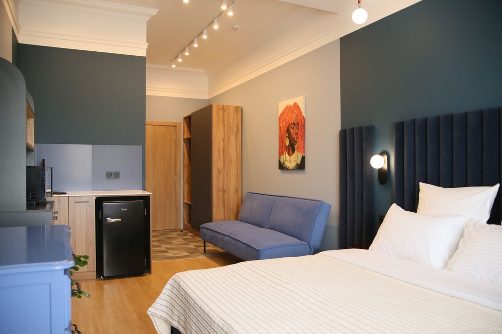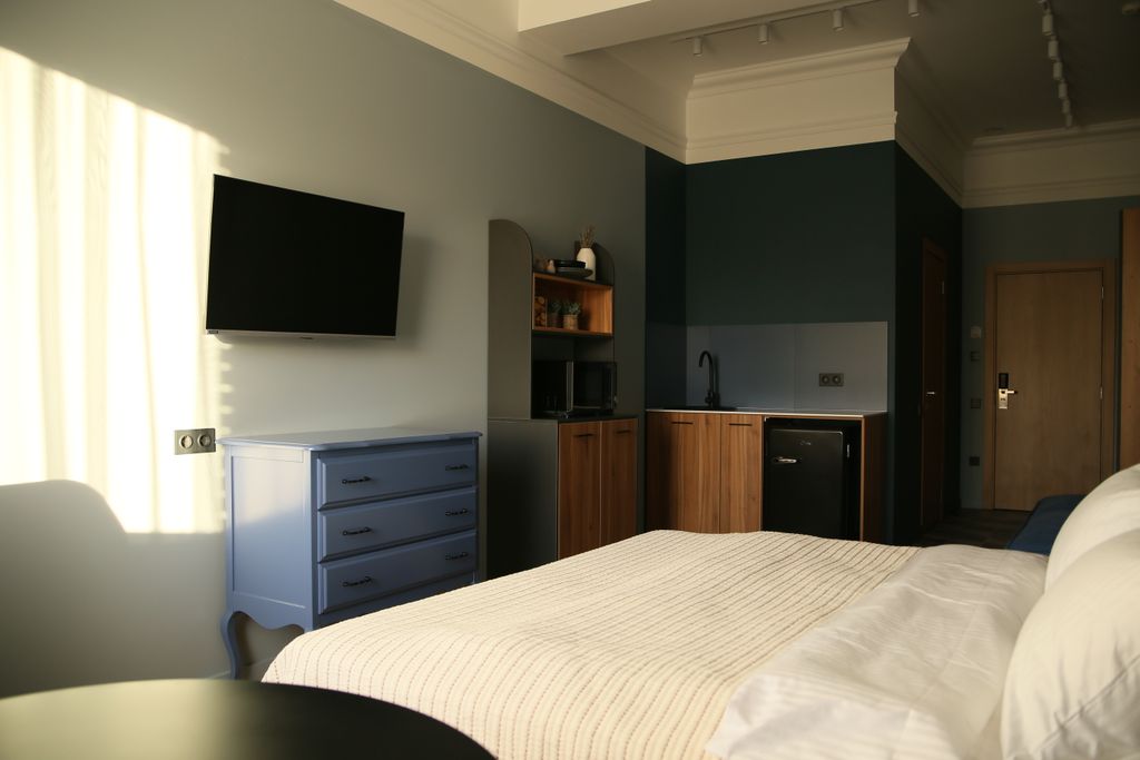 «РазМалевиch» — это стильный апарт-отель, который расположился в Пятигорске, недалеко от живописной реки Подкумок. Это идеальный вариант для тех, кто хочет стать частью уникального художественного пространства, которое подарит незабываемые эмоции и ощущения. Для выбора гостей представлены номера различной вместимости и площади, благодаря чему у вас есть возможность выбрать то, что отвечает именно вашим запросам. Каждый из 17 номеров имеет уникальный эклектичный дизайн с красочными акцентами и натуральными материалами. Номера оборудованы современной мебелью и техникой. Всё продумано до мелочей, включая удобную кровать с качественным постельным бельём, плотные шторы для крепкого сна, ЖК-телевизор, разноплановое освещение, которое вы можете менять в зависимости от настроения, элементы декора для атмосферы уюта. Санузел порадует вас наличием необходимых гигиенических принадлежностей, халата и полотенец. На компактной кухне предусмотрена микроволновая печь, чайная станция и холодильник, чт