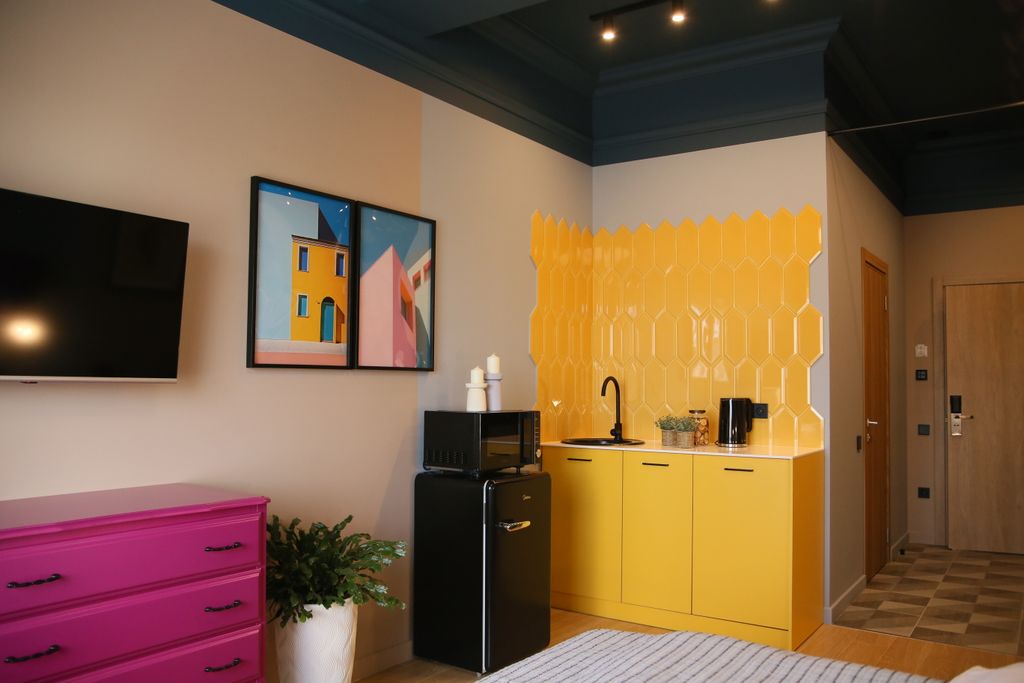 «РазМалевиch» — это стильный апарт-отель, который расположился в Пятигорске, недалеко от живописной реки Подкумок. Это идеальный вариант для тех, кто хочет стать частью уникального художественного пространства, которое подарит незабываемые эмоции и ощущения. Для выбора гостей представлены номера различной вместимости и площади, благодаря чему у вас есть возможность выбрать то, что отвечает именно вашим запросам. Каждый из 17 номеров имеет уникальный эклектичный дизайн с красочными акцентами и натуральными материалами. Номера оборудованы современной мебелью и техникой. Всё продумано до мелочей, включая удобную кровать с качественным постельным бельём, плотные шторы для крепкого сна, ЖК-телевизор, разноплановое освещение, которое вы можете менять в зависимости от настроения, элементы декора для атмосферы уюта. Санузел порадует вас наличием необходимых гигиенических принадлежностей, халата и полотенец. На компактной кухне предусмотрена микроволновая печь, чайная станция и холодильник, чт
