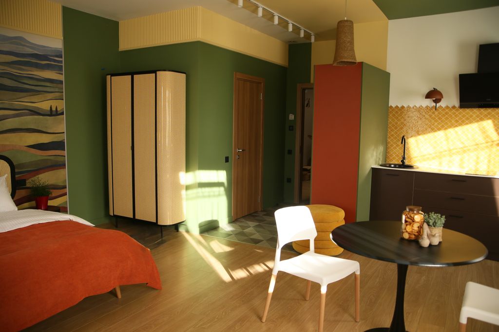 «РазМалевиch» — это стильный апарт-отель, который расположился в Пятигорске, недалеко от живописной реки Подкумок. Это идеальный вариант для тех, кто хочет стать частью уникального художественного пространства, которое подарит незабываемые эмоции и ощущения. Для выбора гостей представлены номера различной вместимости и площади, благодаря чему у вас есть возможность выбрать то, что отвечает именно вашим запросам. Каждый из 17 номеров имеет уникальный эклектичный дизайн с красочными акцентами и натуральными материалами. Номера оборудованы современной мебелью и техникой. Всё продумано до мелочей, включая удобную кровать с качественным постельным бельём, плотные шторы для крепкого сна, ЖК-телевизор, разноплановое освещение, которое вы можете менять в зависимости от настроения, элементы декора для атмосферы уюта. Санузел порадует вас наличием необходимых гигиенических принадлежностей, халата и полотенец. На компактной кухне предусмотрена микроволновая печь, чайная станция и холодильник, чт