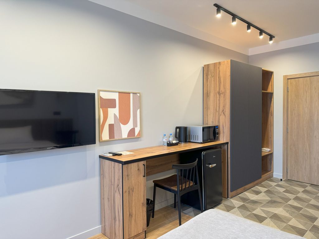 «РазМалевиch» — это стильный апарт-отель, который расположился в Пятигорске, недалеко от живописной реки Подкумок. Это идеальный вариант для тех, кто хочет стать частью уникального художественного пространства, которое подарит незабываемые эмоции и ощущения. Для выбора гостей представлены номера различной вместимости и площади, благодаря чему у вас есть возможность выбрать то, что отвечает именно вашим запросам. Каждый из 17 номеров имеет уникальный эклектичный дизайн с красочными акцентами и натуральными материалами. Номера оборудованы современной мебелью и техникой. Всё продумано до мелочей, включая удобную кровать с качественным постельным бельём, плотные шторы для крепкого сна, ЖК-телевизор, разноплановое освещение, которое вы можете менять в зависимости от настроения, элементы декора для атмосферы уюта. Санузел порадует вас наличием необходимых гигиенических принадлежностей, халата и полотенец. На компактной кухне предусмотрена микроволновая печь, чайная станция и холодильник, чт