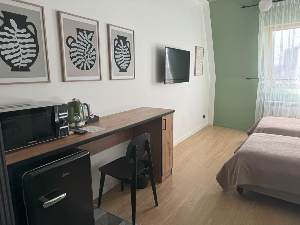 «РазМалевиch» — это стильный апарт-отель, который расположился в Пятигорске, недалеко от живописной реки Подкумок. Это идеальный вариант для тех, кто хочет стать частью уникального художественного пространства, которое подарит незабываемые эмоции и ощущения. Для выбора гостей представлены номера различной вместимости и площади, благодаря чему у вас есть возможность выбрать то, что отвечает именно вашим запросам. Каждый из 17 номеров имеет уникальный эклектичный дизайн с красочными акцентами и натуральными материалами. Номера оборудованы современной мебелью и техникой. Всё продумано до мелочей, включая удобную кровать с качественным постельным бельём, плотные шторы для крепкого сна, ЖК-телевизор, разноплановое освещение, которое вы можете менять в зависимости от настроения, элементы декора для атмосферы уюта. Санузел порадует вас наличием необходимых гигиенических принадлежностей, халата и полотенец. На компактной кухне предусмотрена микроволновая печь, чайная станция и холодильник, чт