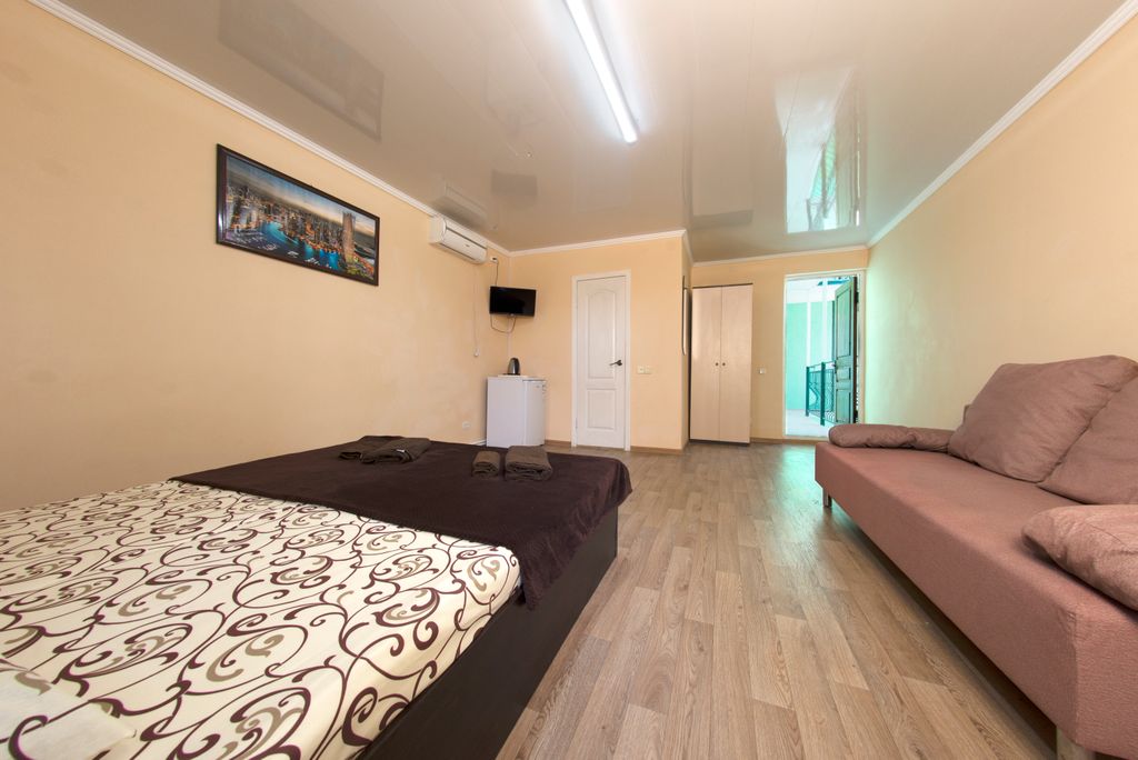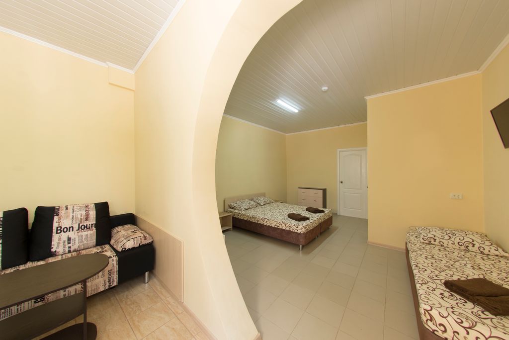 Гостиничные номера со всеми удобствами в 3-х минутах ходьбы к морю. Всё современно, автономно, комфортно, чисто. В каждом номере кондиционер, телевизор, холодильник, ванная комната. Есть общая кухня для приготовления пищи — по желанию. Рядом кафе и бары. Вы с удовольствием проведете время возле моря. Трансфер организуем (платно), есть возможность посетить достопримечательности Крыма по желанию группой или индивидуально.